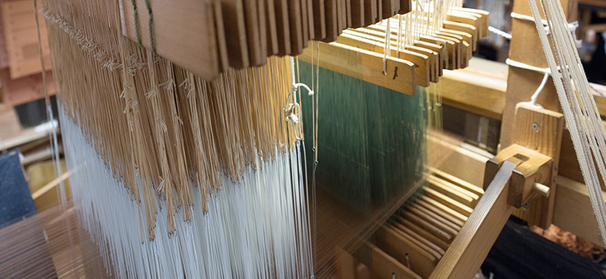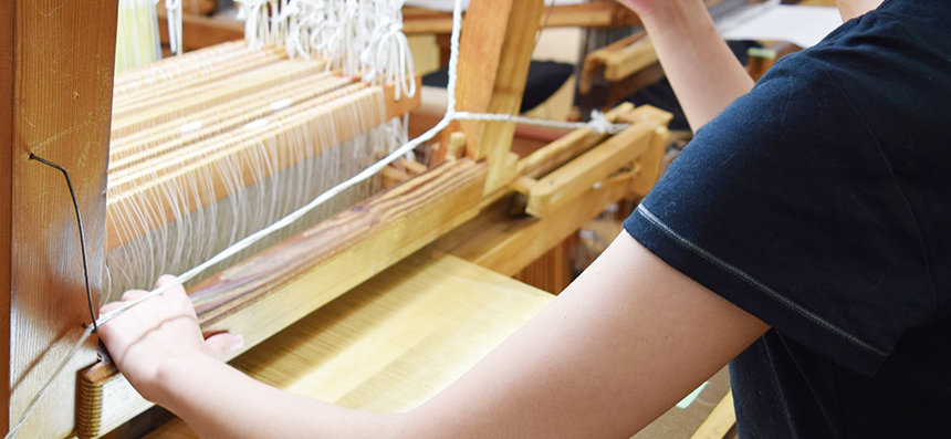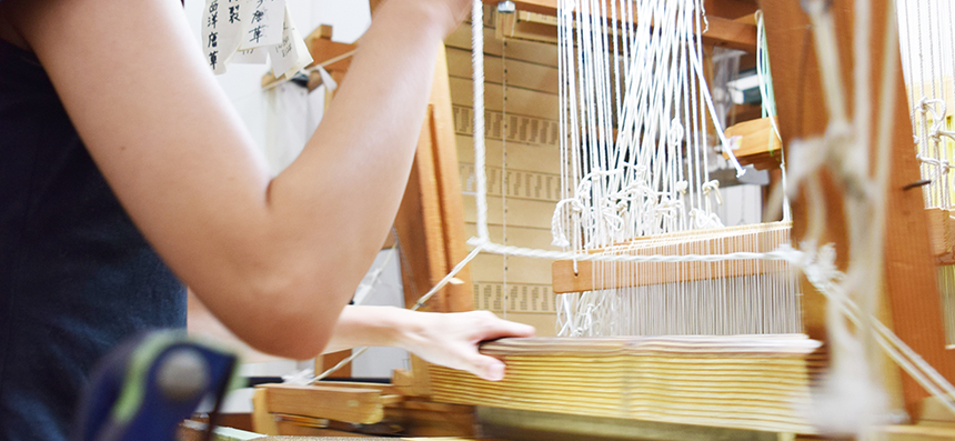 織機によらない昔ながらの「手機(テバタ)」を駆使して、