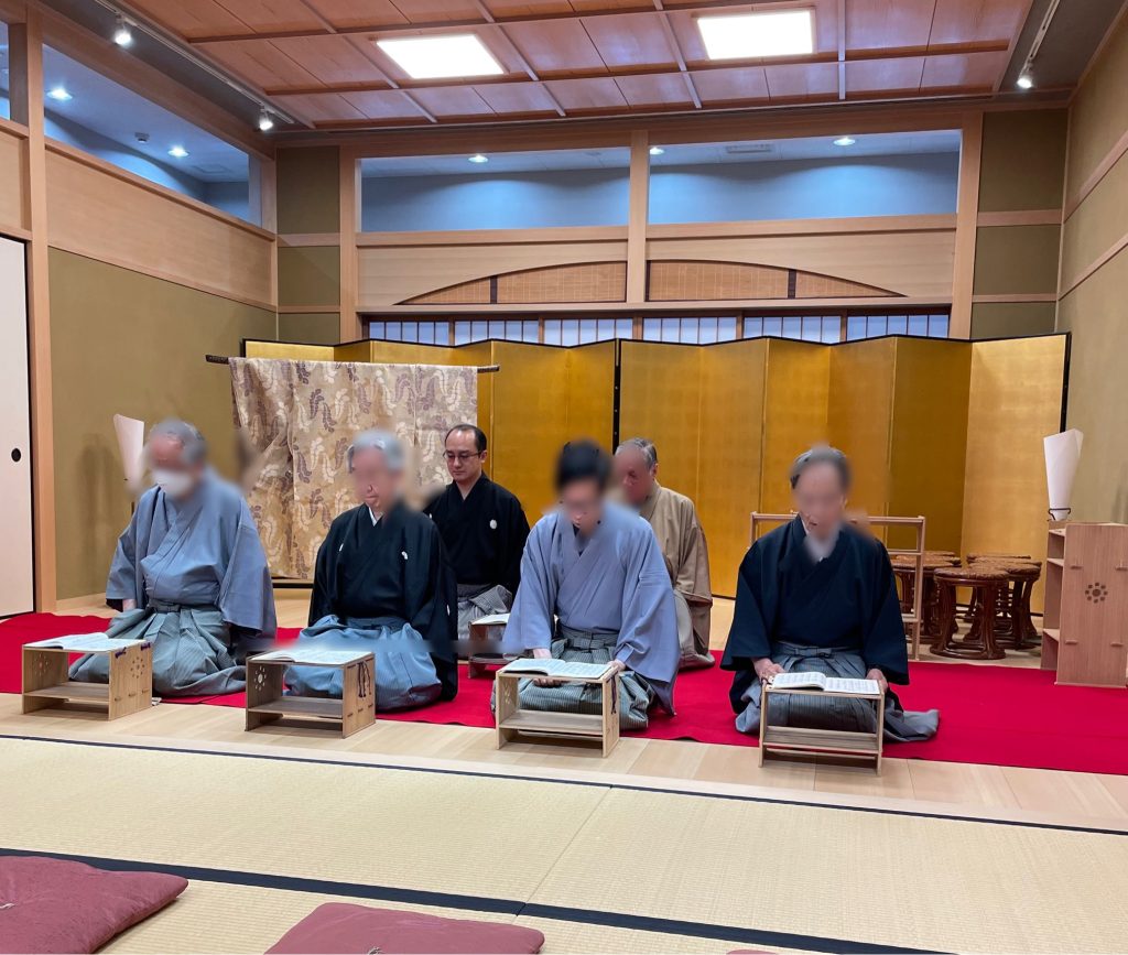貸切った大広間でお謡いを披露する、なんとも贅沢で気品に満ちた京都ならではの会である。