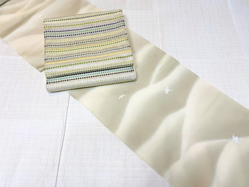 透かし織に関してはリボン糸をシルバーにしているのでグレーベースの着物と馴染み良し!