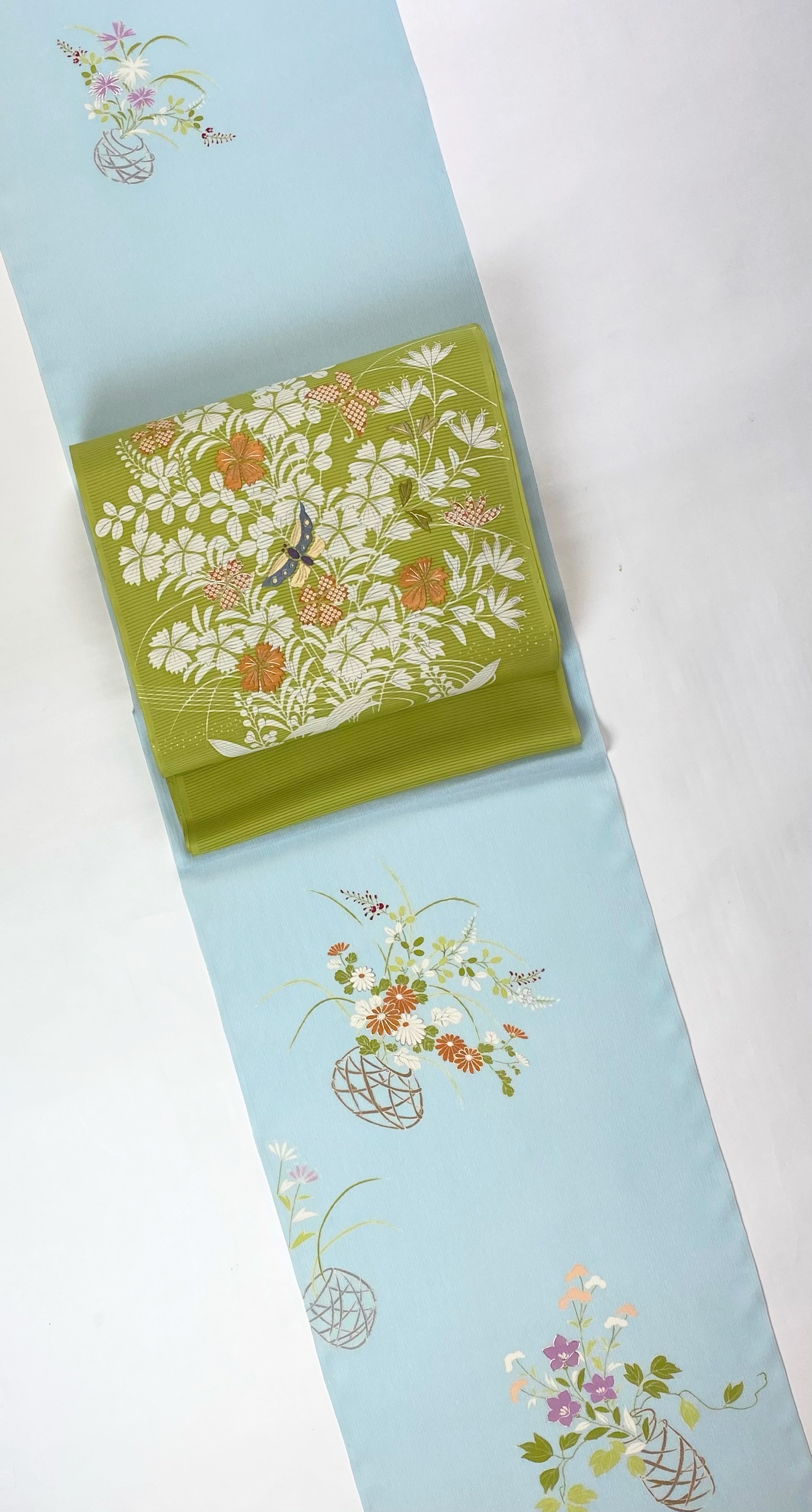 天の川 付下 花籠と駒絽 染帯 御所解 撫子蝶