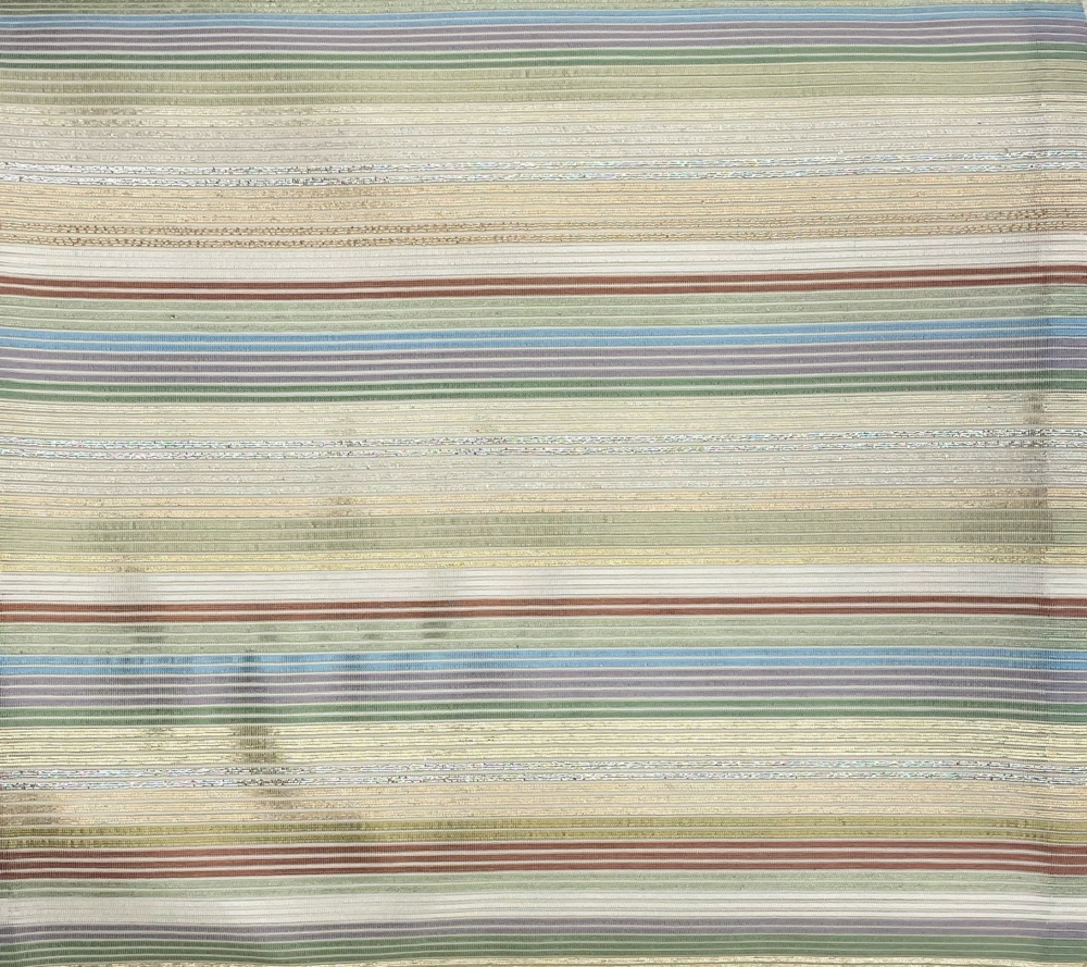 白地に銀通しという白と銀の地紋にカラフルな横段文様がモダンで