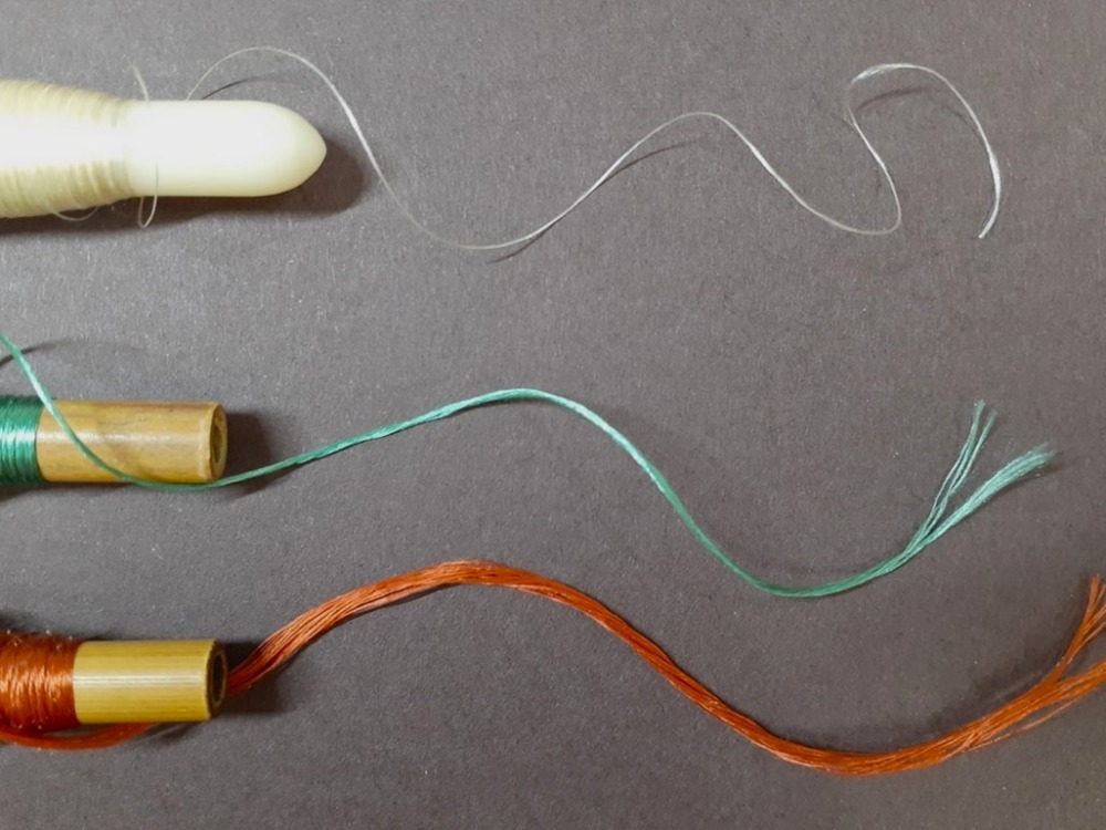 唐織の絵緯など、ふっくらとした表現にかかせないのが片撚りの絹糸です。