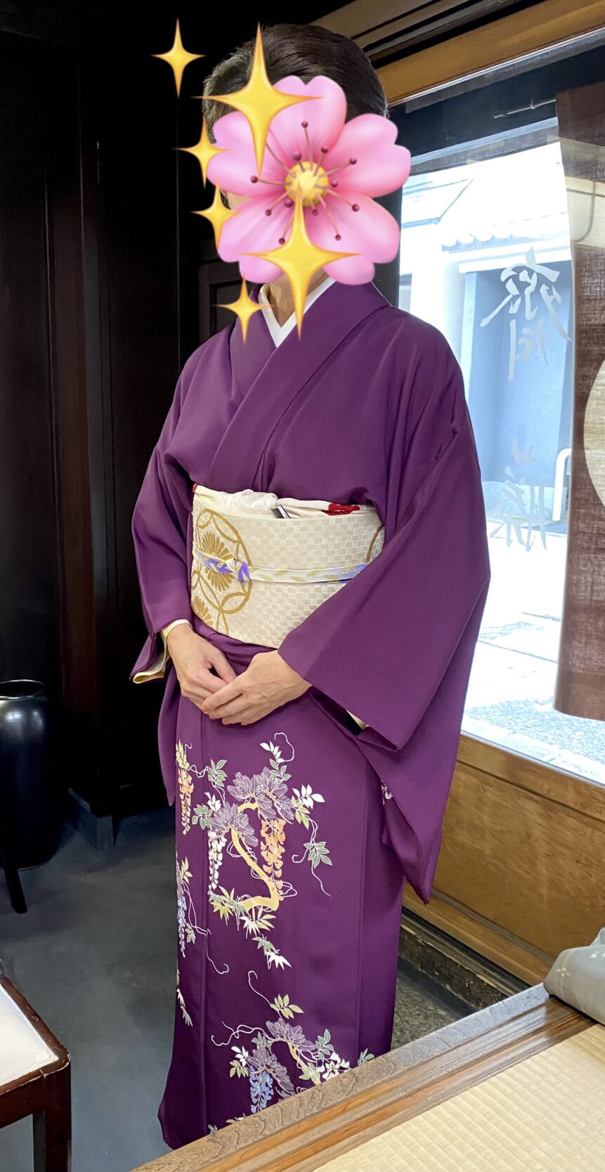 桜も散る中、菖蒲や藤といったモチーフのお着物で季節感をお楽しみになられています♪