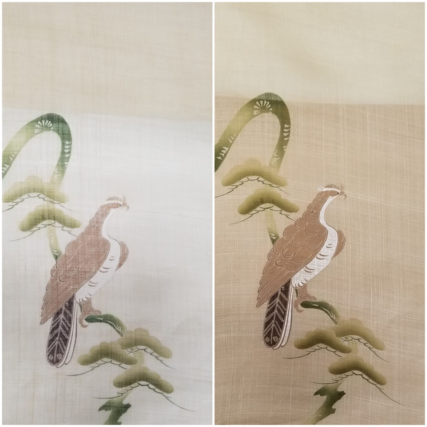 野趣な趣きのあるピーニアの素材の夏染帯「松に鷹」です。