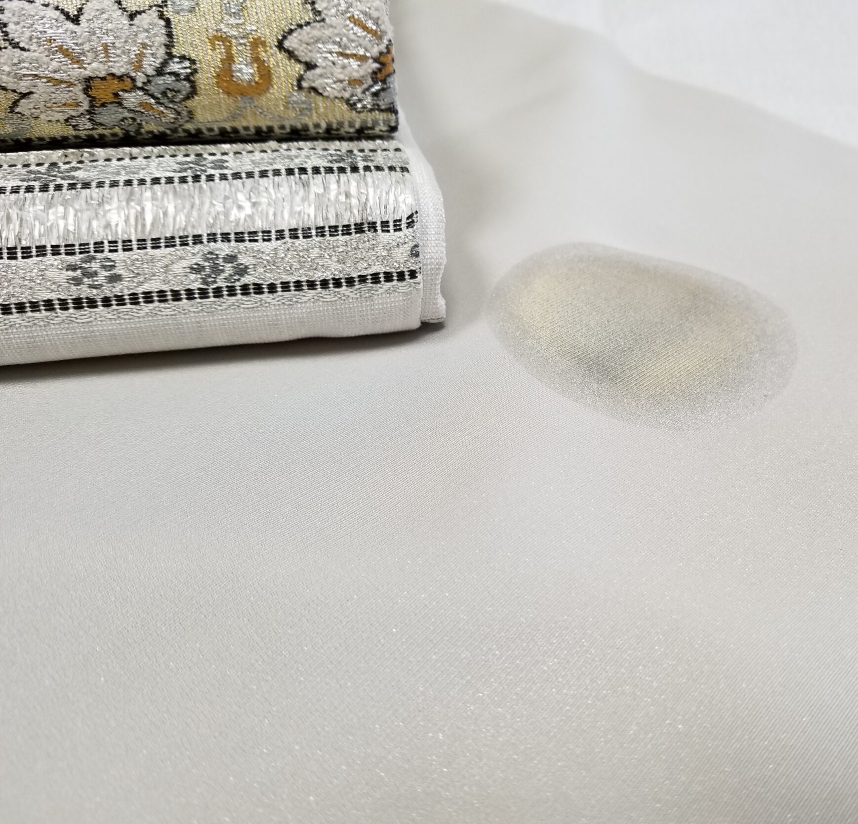 織物職人さんに依頼し、織ってもらった紬素材に付下調子に変わり市松を刺繍しました。