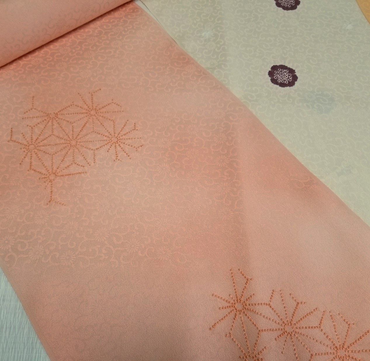菊唐草の地紋は数あれど、弊店はわざわざオリジナルで白生地を織ってます。