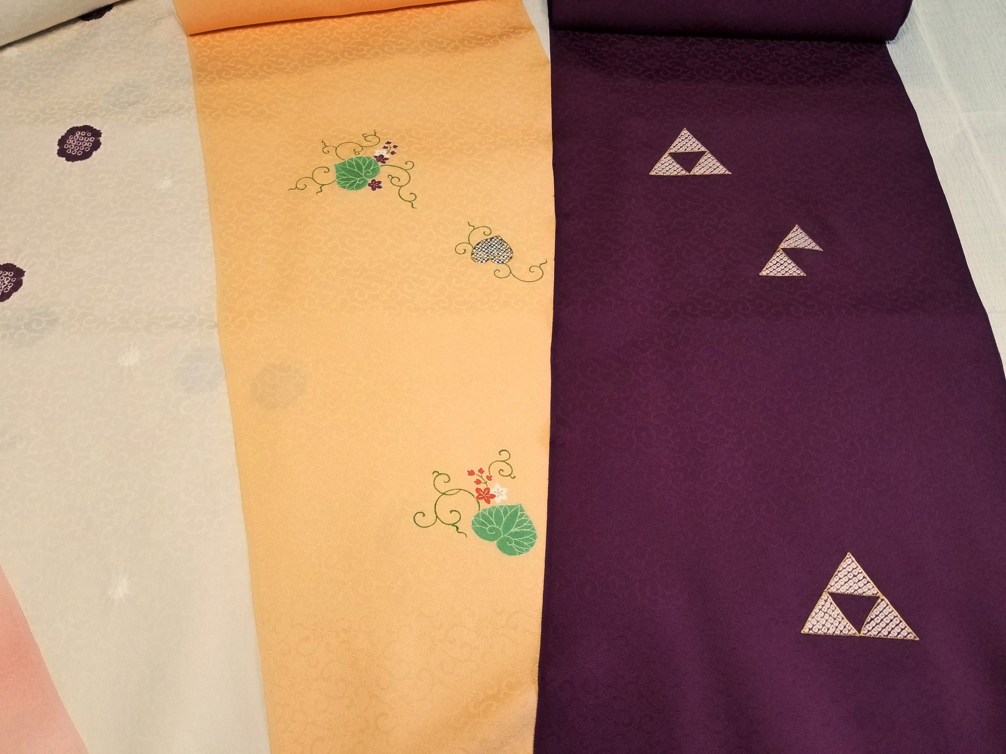 御所解染帯との相性も良く菊唐草の反物はいろいろ染めてます。
