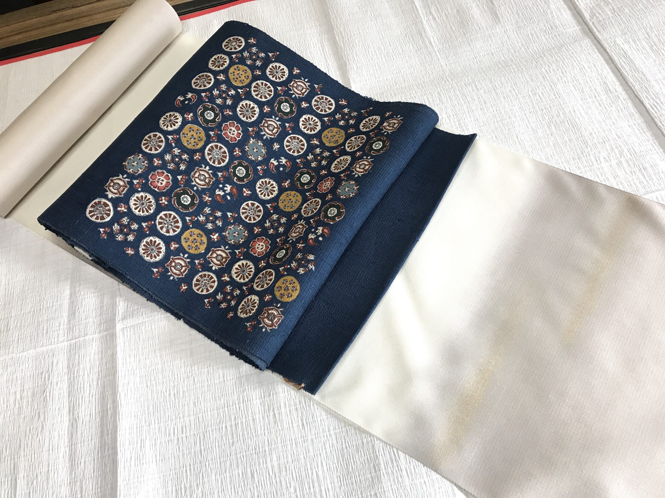 無自覚でしたが、昨年から横段ぼかしをよくお勧めしているようで、先日もお誂えで仕立てあがったのはグリーンの横段ぼかし、今年最初のご成約も横段の多色ぼかし霞でしたし、そして今日blogに掲載しようと思って手にとった品も横段ぼかしでした笑。