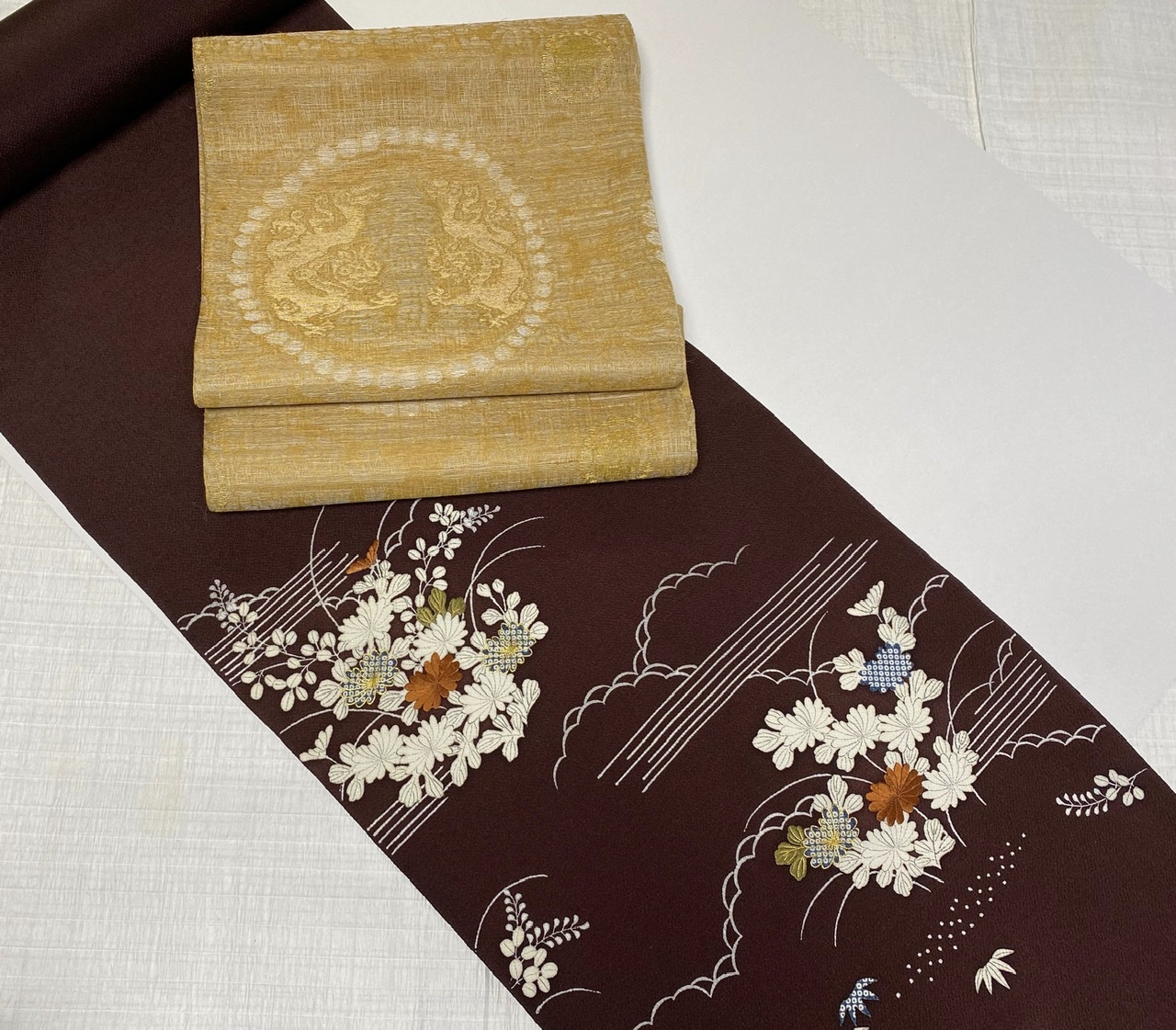 この袋帯は抜け感もございますので付下を単衣使用にして、これからの時期を先取り単衣として6月いっぱい、また9月10月とお使いいただくのも良いでしょう。