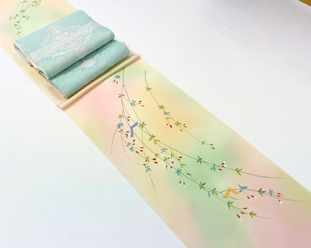 合わせた袋帯は、これまた軽やかな色目をチョイスしました。