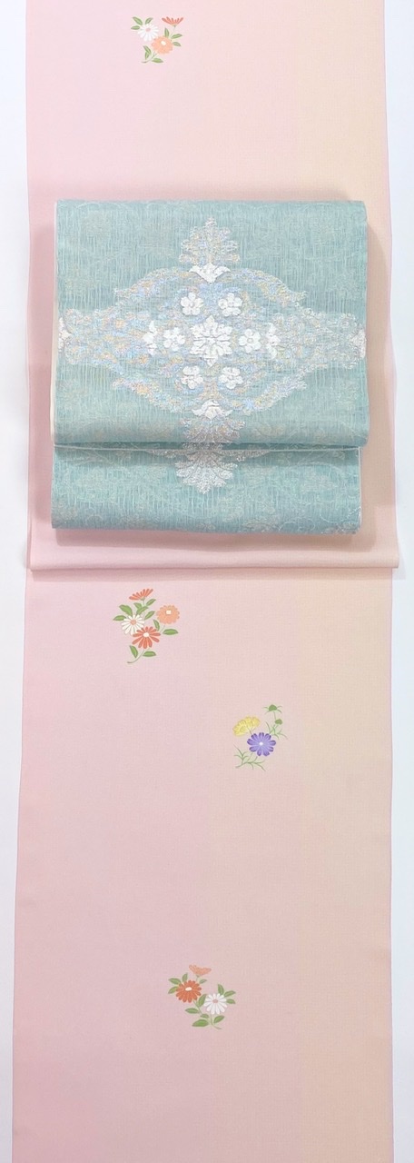 色の明度が、きものと帯でいぃ感じにバランスが取れているコーデです。