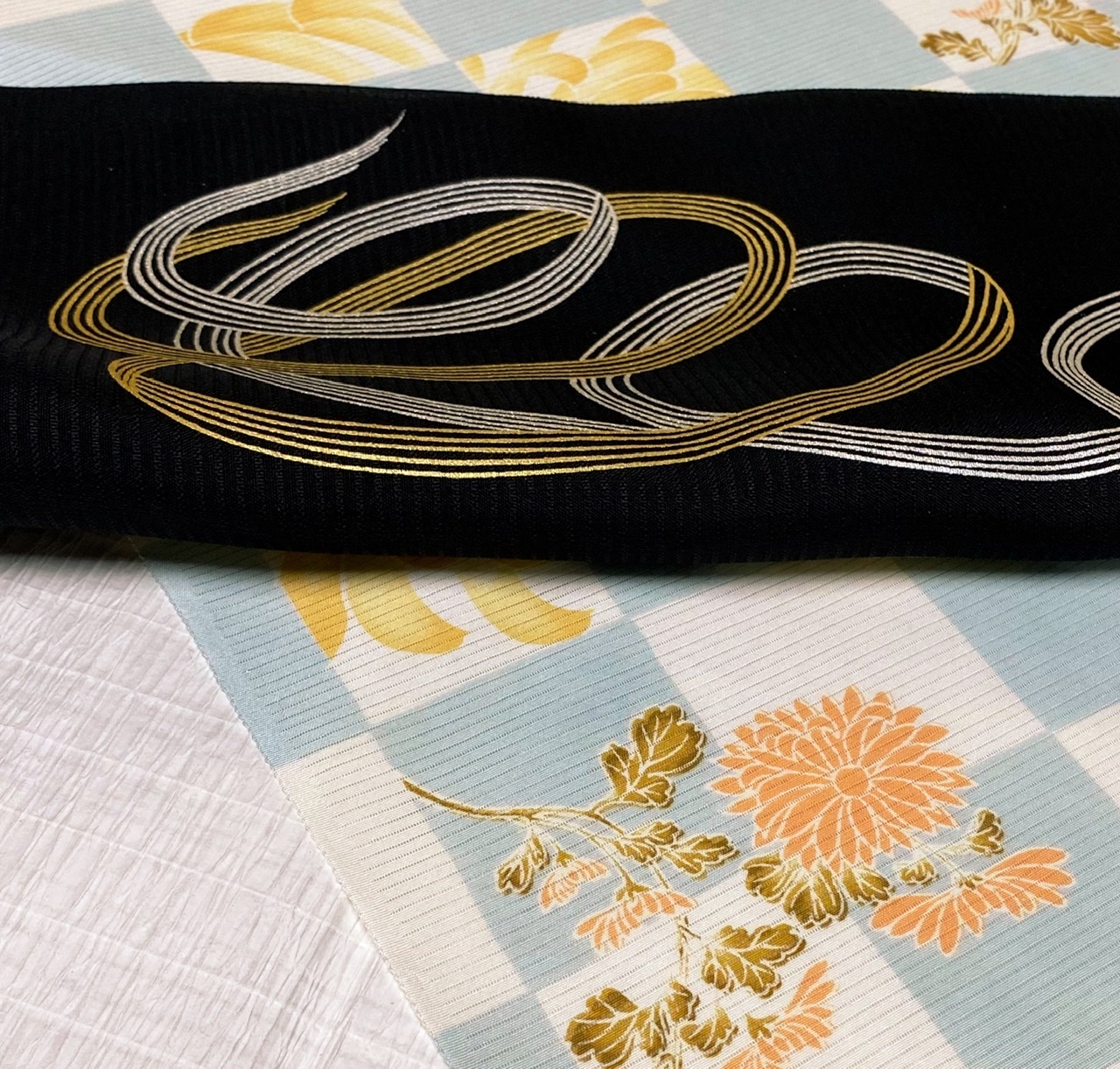 黒地の螺旋 夏染帯、お腹も動きがあっていぃですね~^^