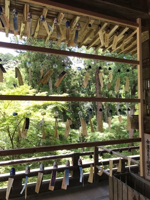 涼しげな音色の風鈴には願いを込めた短冊が。