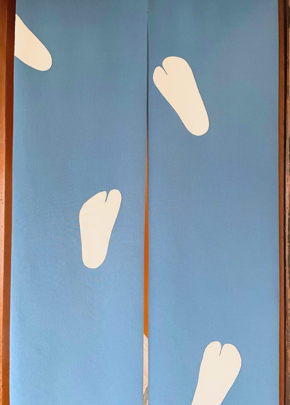暖簾のイメージは勝手口を忙しく歩き回る裏方の足袋と足音、