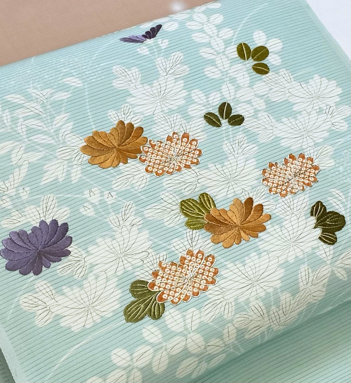 今夏は控え目な御所解染帯が多い中、この地色はキレイ目の御所解を探されていたら要チェックです!