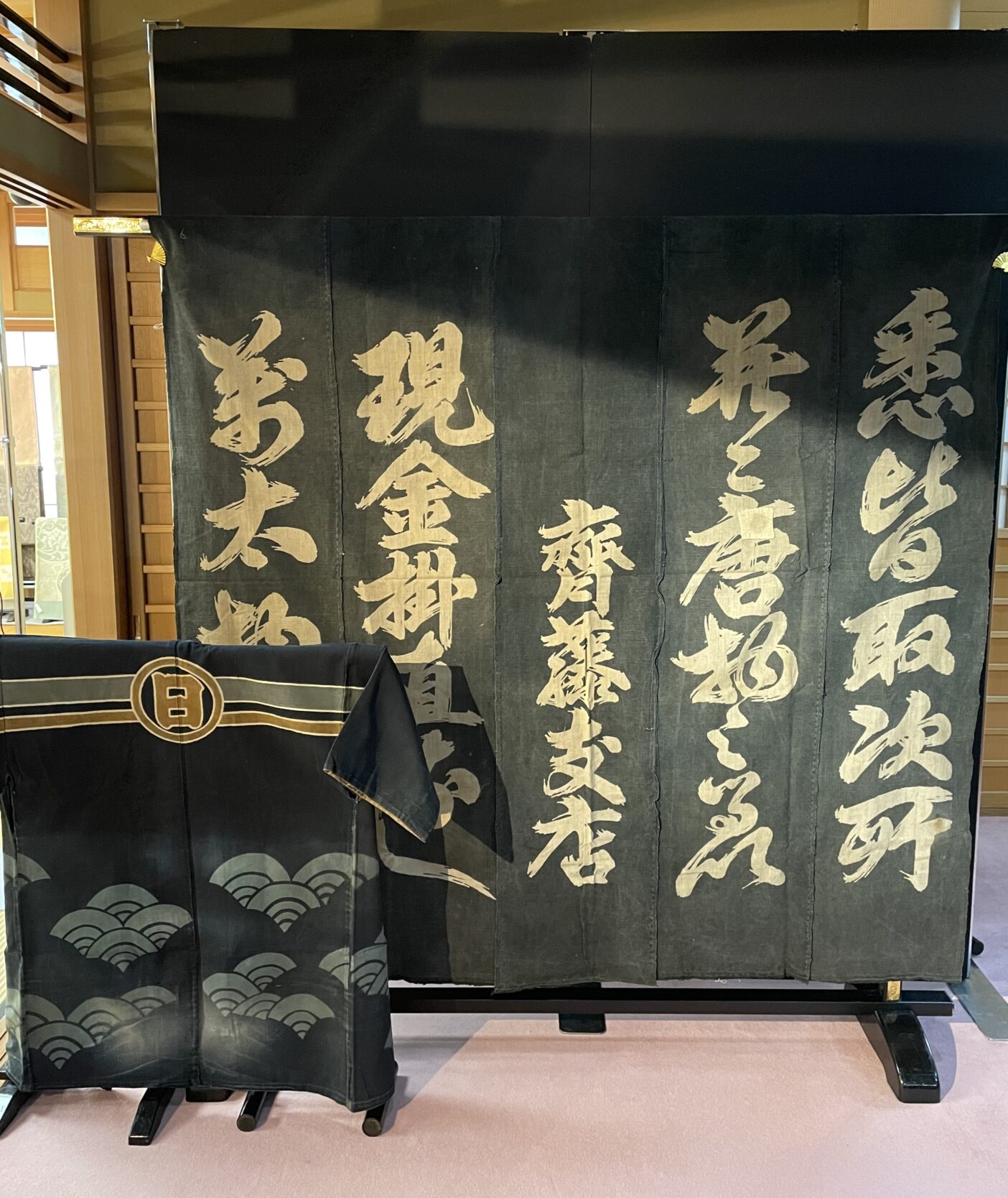 (大正に使われていた齊藤の暖簾と半被)展示会にて