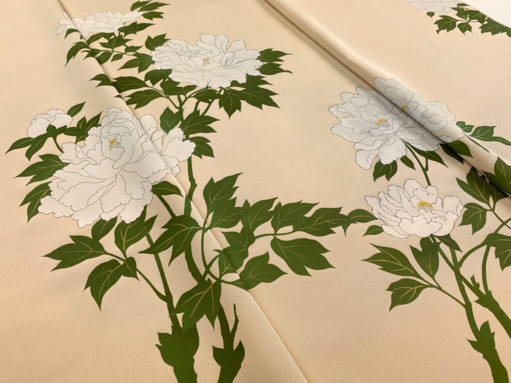 岩絵具で描いた「牡丹図訪問着」が直ぐに!