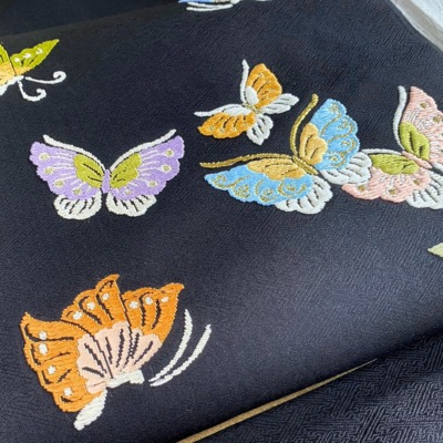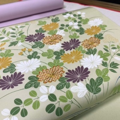 無意識に渋くなってしまわないように「可愛らしさ」を意識してみました。建付けの悪い記憶の引き出しから、縮緬の帯には地紋の着物がよく合うこと、吉祥紋であれば花同士で柄が重ならないことなどを思い出しながら合わせてみました。冬の景色のように、白上げの松竹梅が雪を被って、周囲…