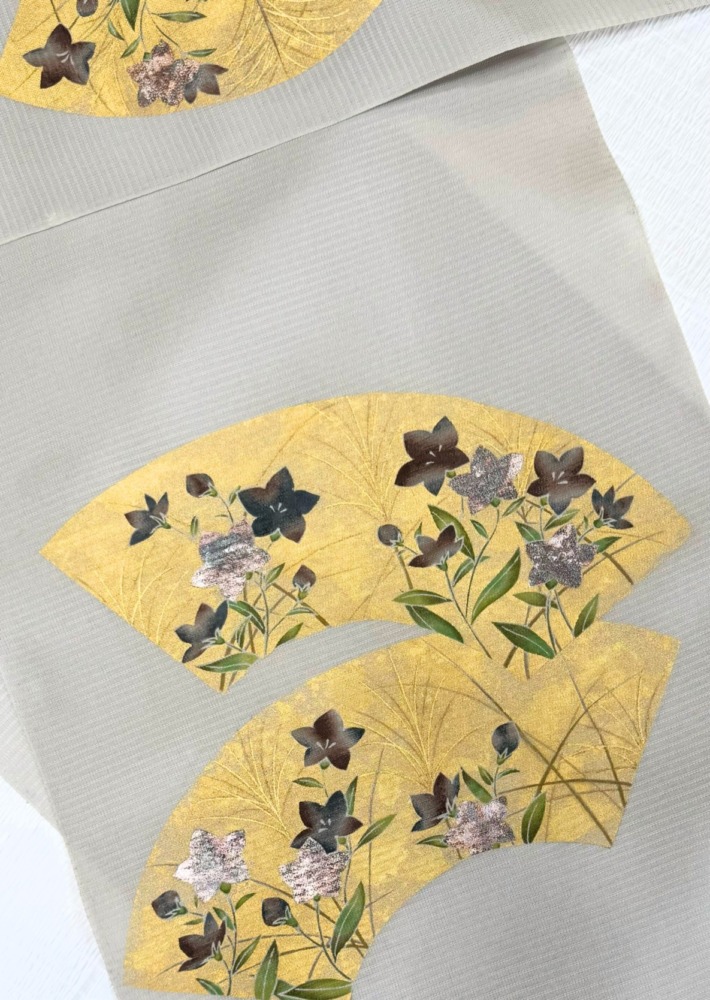 夏名古屋帯薄鼠地光琳団扇