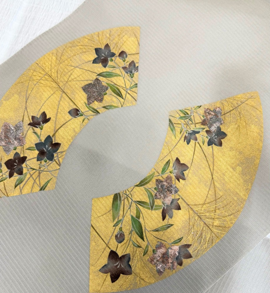 今回ご紹介するのは尾形光琳の団扇(だんせん)を夏染帯として再生した作品。