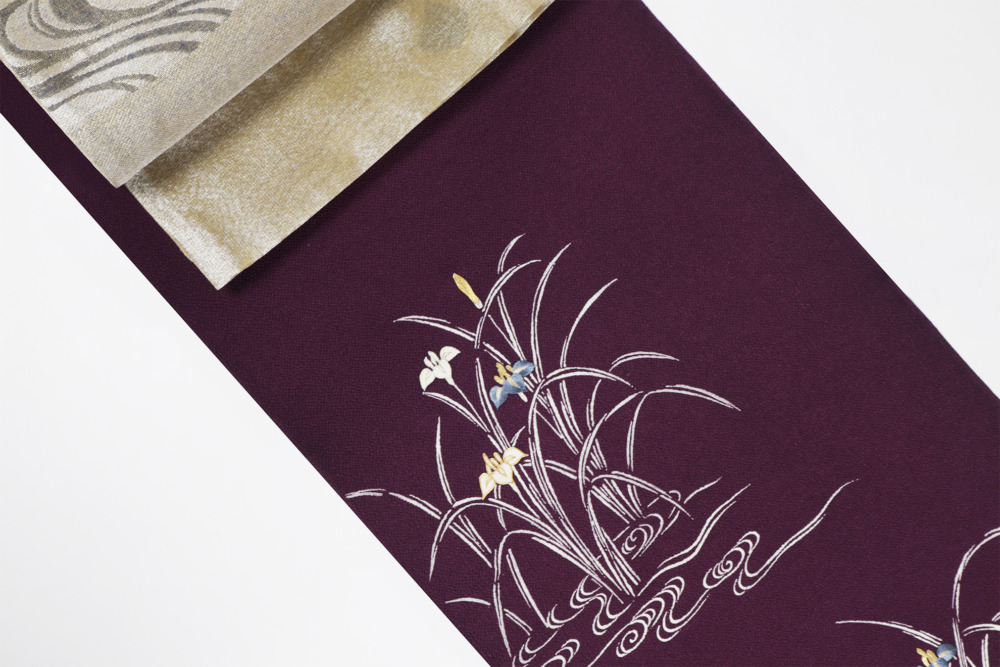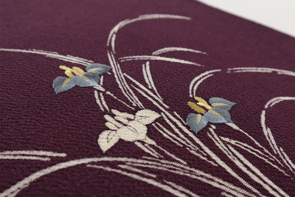 五月から見ごろになります杜若を刺繡と糊あげで仕上げてます。