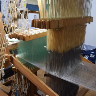 京都西賀茂にて、ぎをん齋藤で販売する西陣織帯を手機で制作しています。