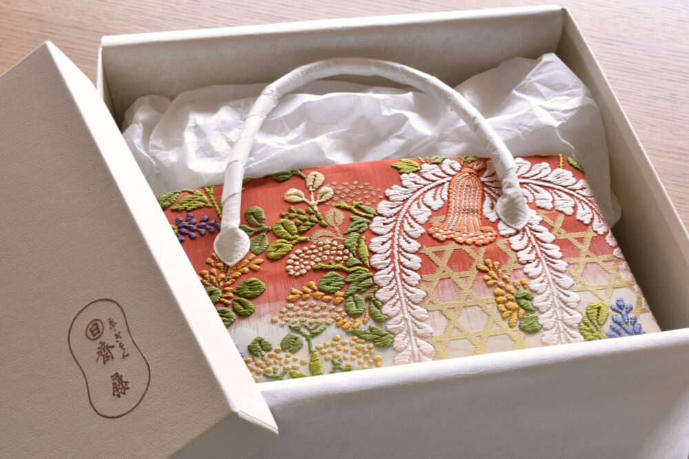 「唐織」に代表される伝統的な手機による西陣織の豪華な生地を使用した袋物は、その圧倒的な存在感と高級感で皆様の装いを華やかに彩ります。私たちの「織り」をより身近に感じていただけるよう、和装のトータルコーディネイトでご提案いたします。