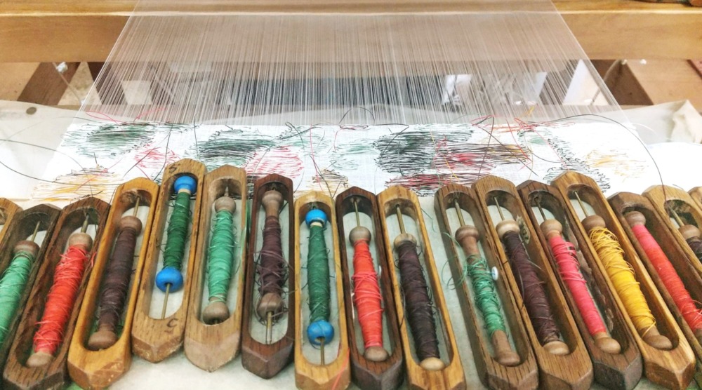 そのため柄と柄の間で糸が渡らないように、時には緯を増やして、