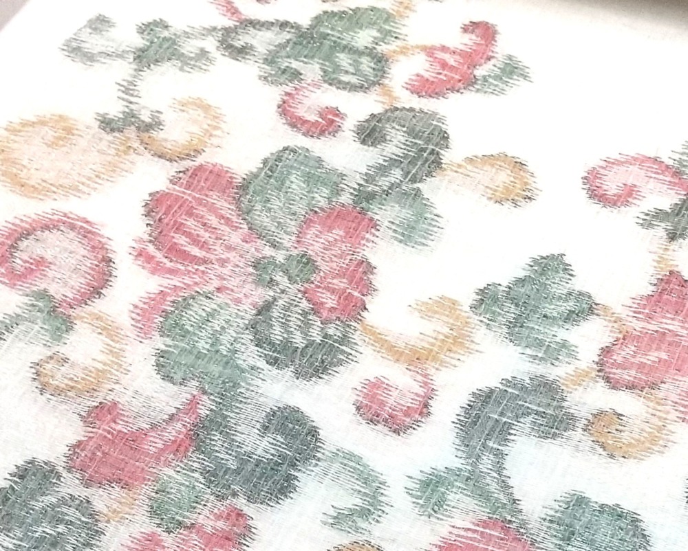 軽やかな帯、中でもとりわけ香纓は地の糸も細く、裏が透けるほど。