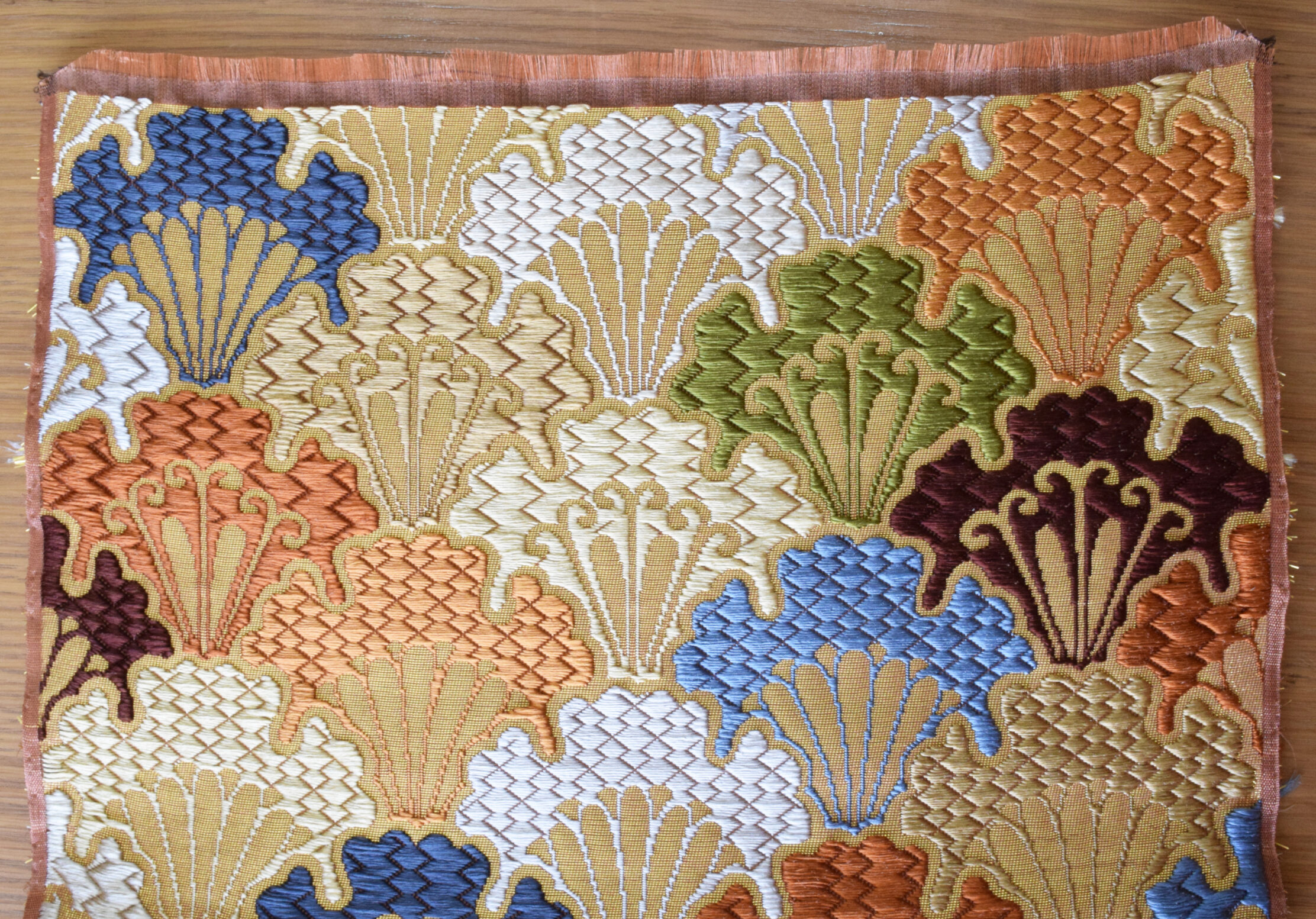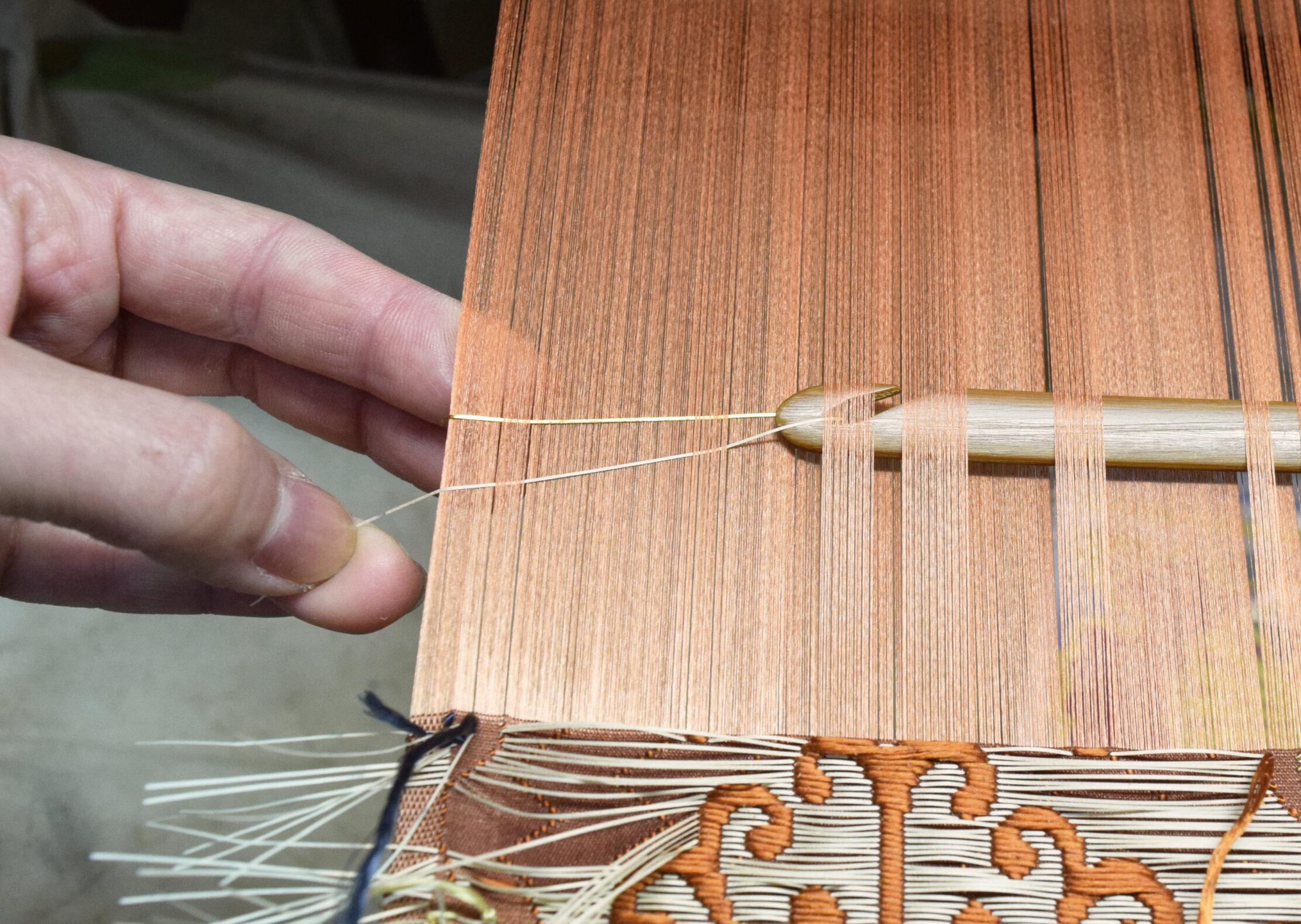 箔 → 絵緯(どうぬき:色糸のことです)→ 地緯(じぬき)→ 箔・・・の順に織っていきます。