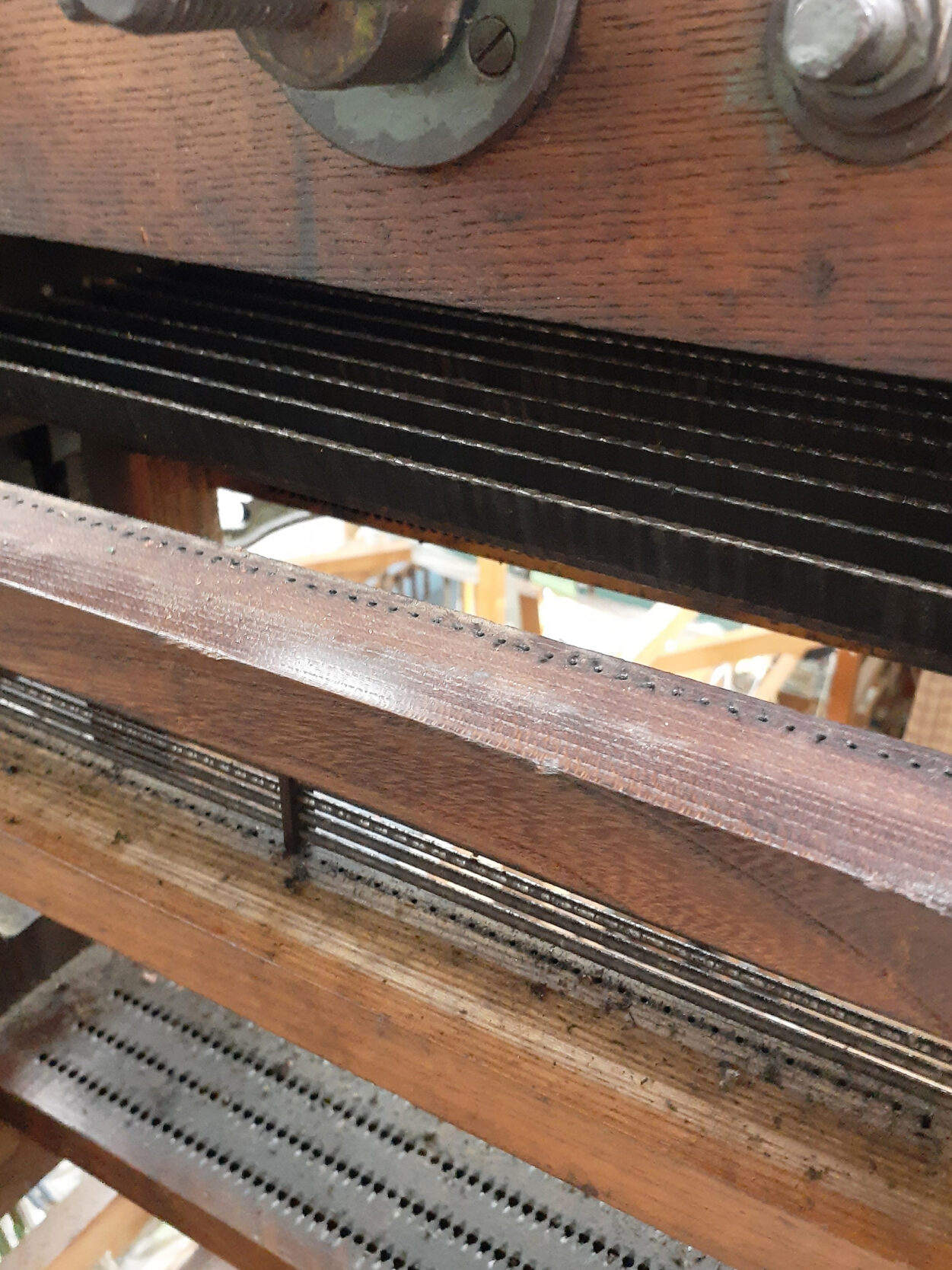 木製の本体のため可動部分が経年劣化で木目にそって割れてしまい、ついに交換することになりました。