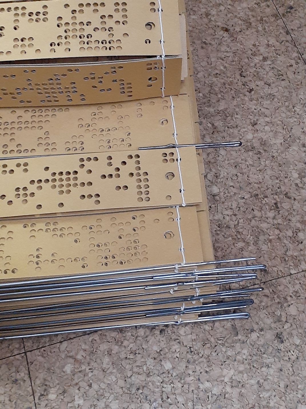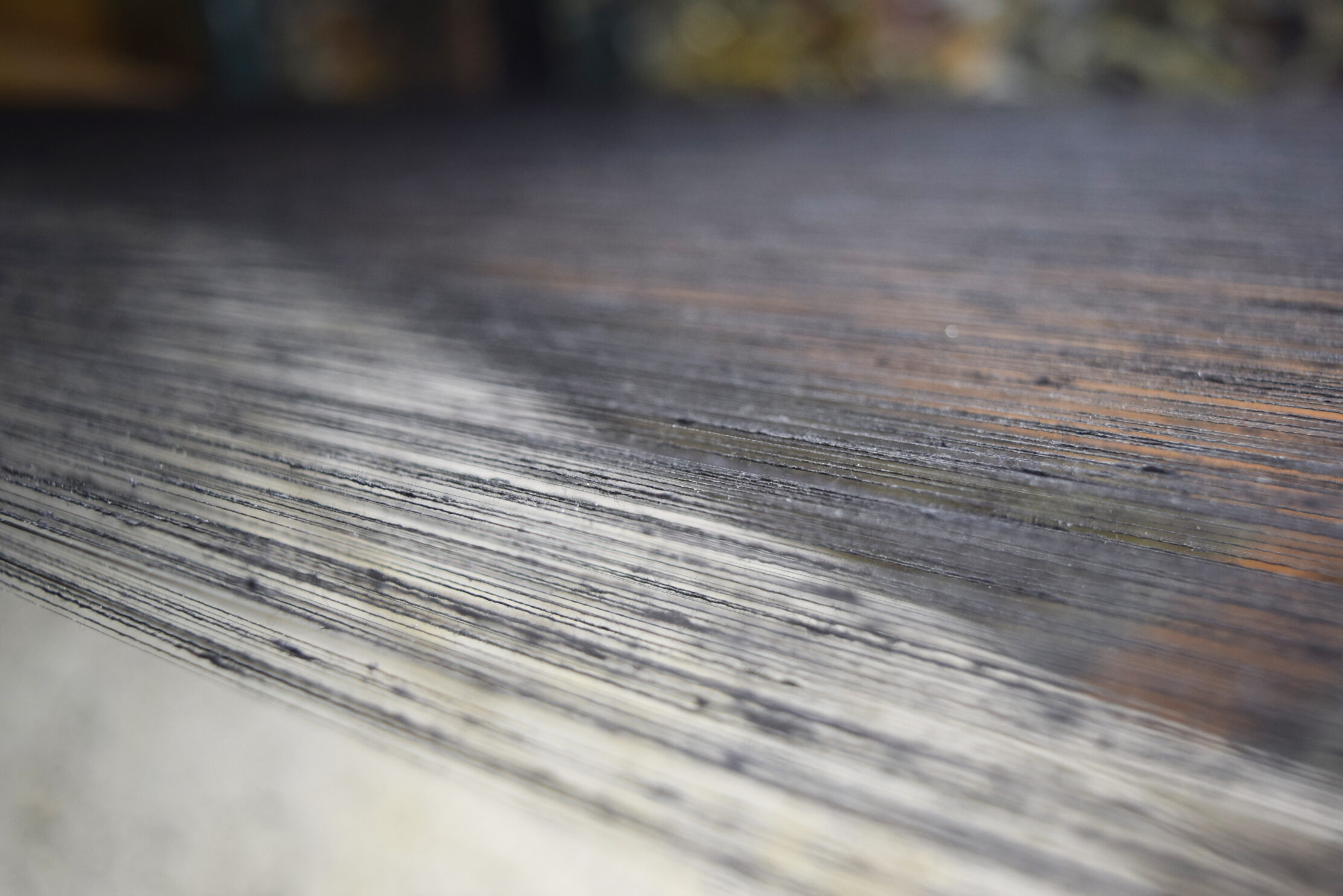 紋図や筬などの機まわりは曲尺で作られていますが、織り上がった帯地は鯨尺で計…