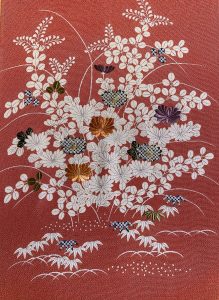 以前にも話したように、御所解文様は地色を染めた後、生地白が柄の構成となるので地色と柄の