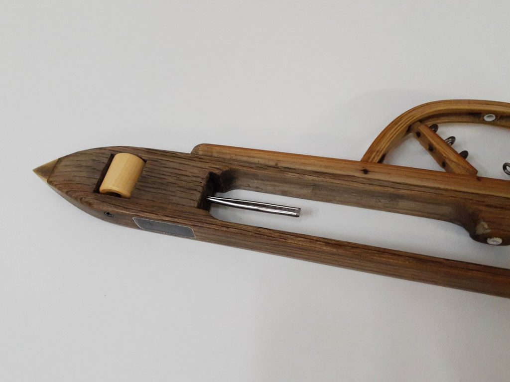 杼の裏面にある小さなタイヤと、ツルまわり(地緯が出てくる口で、引き具合を調節するところ)を直していただきました。