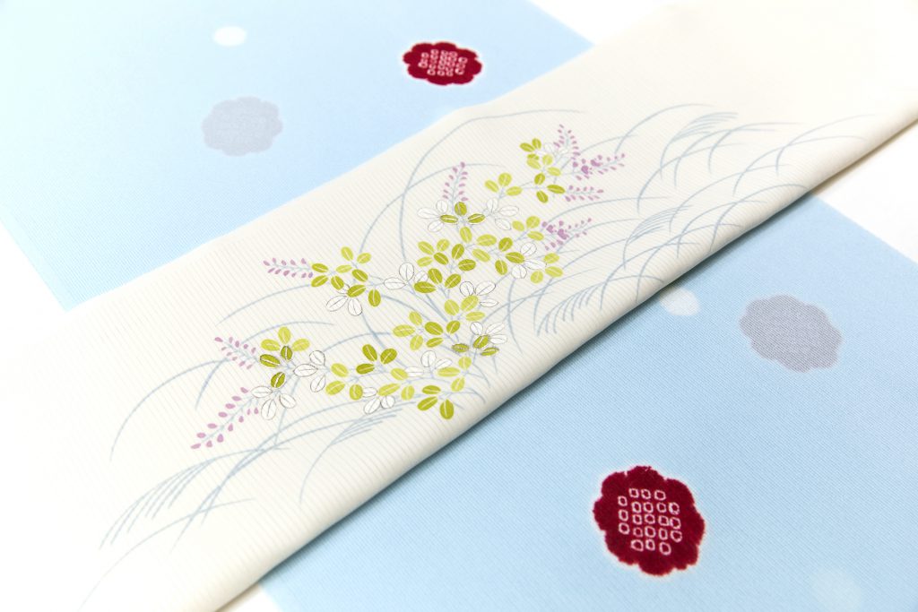 6月単衣、78月夏物、9月単衣、10月袷と目まぐるしい事にうんざりして使わなくなったお客さま、今回のようなコーディネートを一つお持ちいただけましたら、わずらわしさの解消の一案になるかと思います。