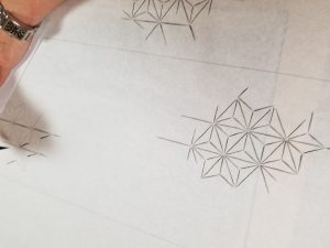 鹿の子絞りで「麻の葉」の気軽な付下の草稿です。