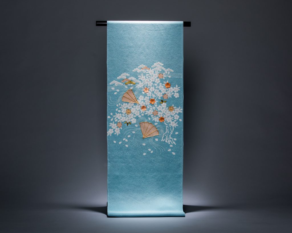 生地の選別から地色、柄行き、友禅、刺繍、金彩など、多数の工程と