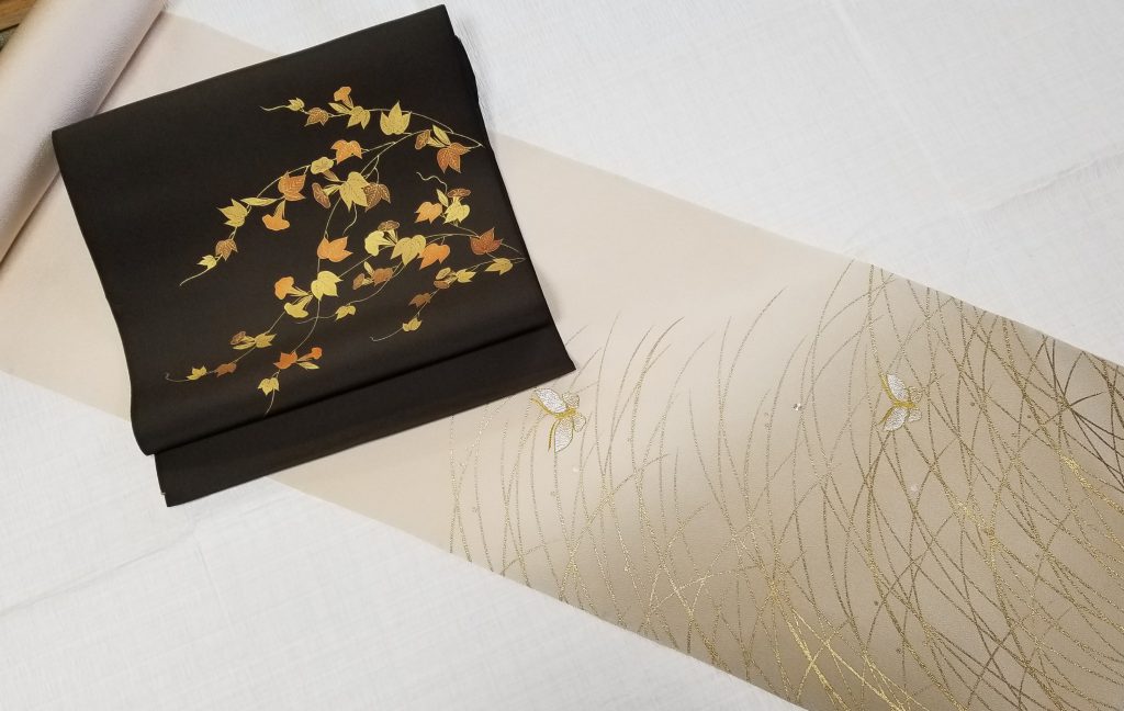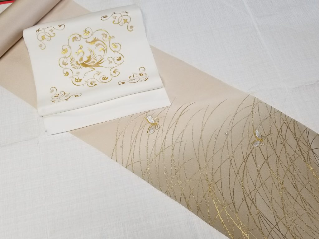 帯の色目によって、全体のイメージがガラっと変化する!という感じをご覧いただきました。