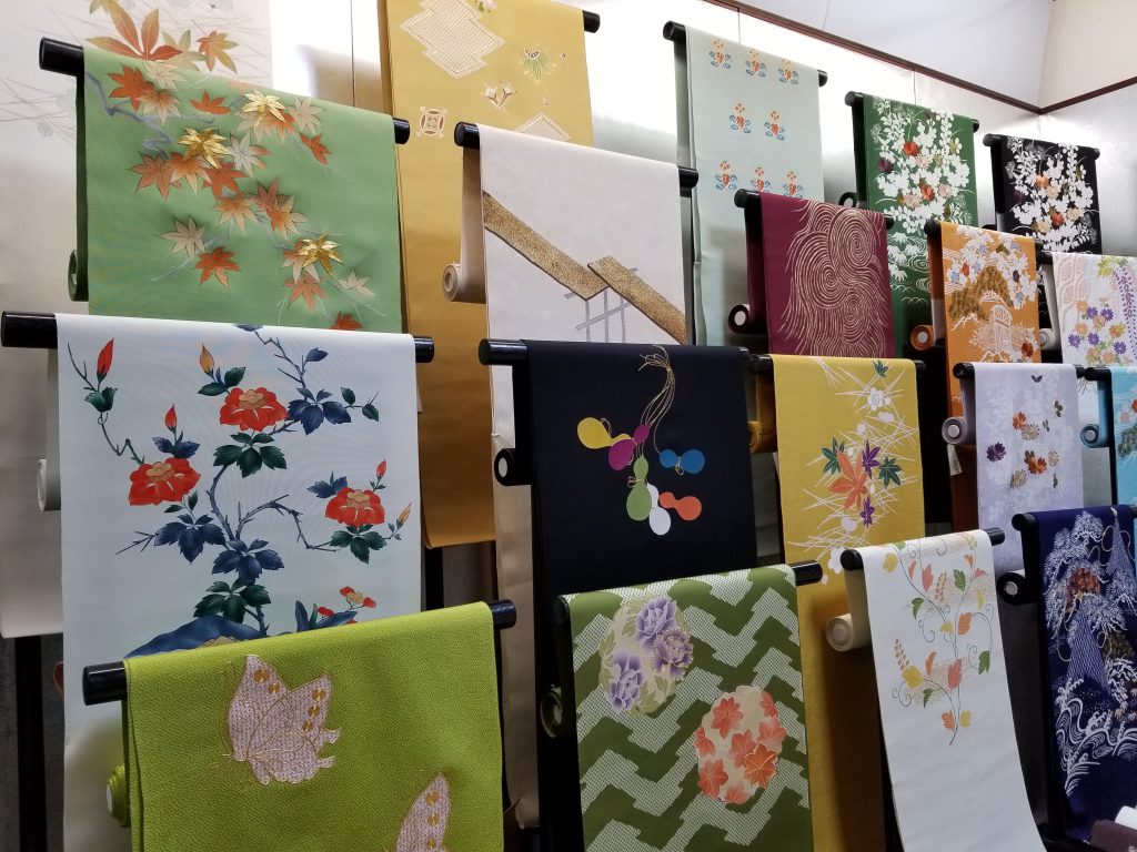 前半の陳列会は、やはり「金」にご注目いただいてまして、摺箔をはじめ金のイメージするきものや帯がお嫁入りする事が多いように思います♪