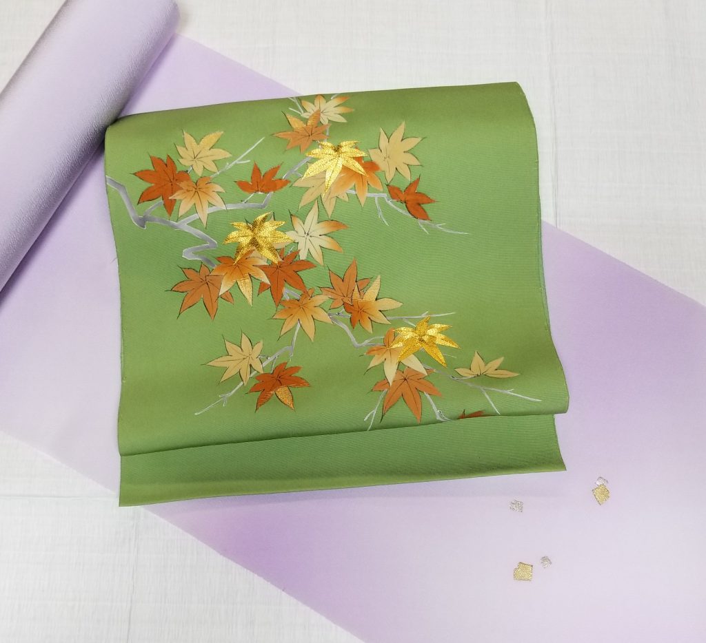 秋に持って来いの紅葉染帯です。季節感たっぷりで明日のお出掛けにぴったりです^^