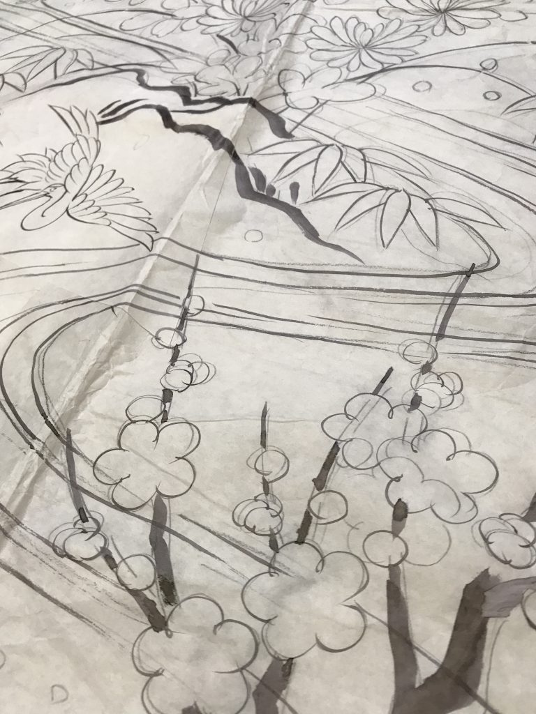 →その品が着物なのか帯なのか、手間要り具合で当然前後しますが、平均的には大体3~4か月程度の猶予をいただいています。工場のような製造ラインではなく全てが職人の手仕事となりますので、時間の余裕をもってご注文いただくことをお勧め致します。