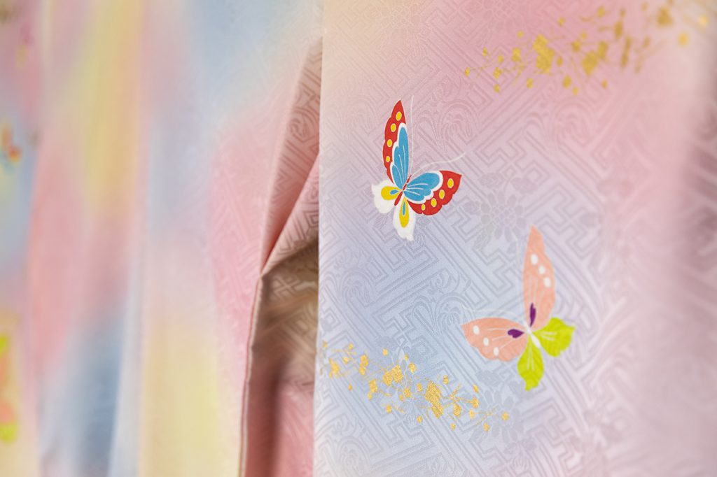 蝶の振袖はゆくゆくはお袖を詰めて、訪問着としてお使いいただける仕様でございます。