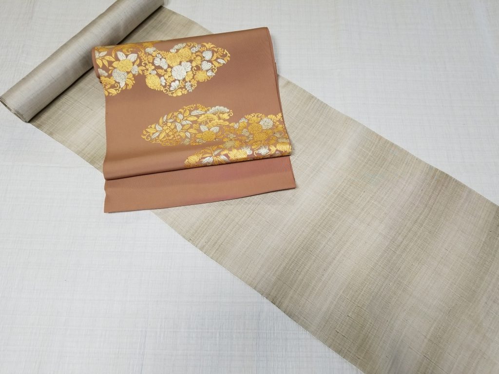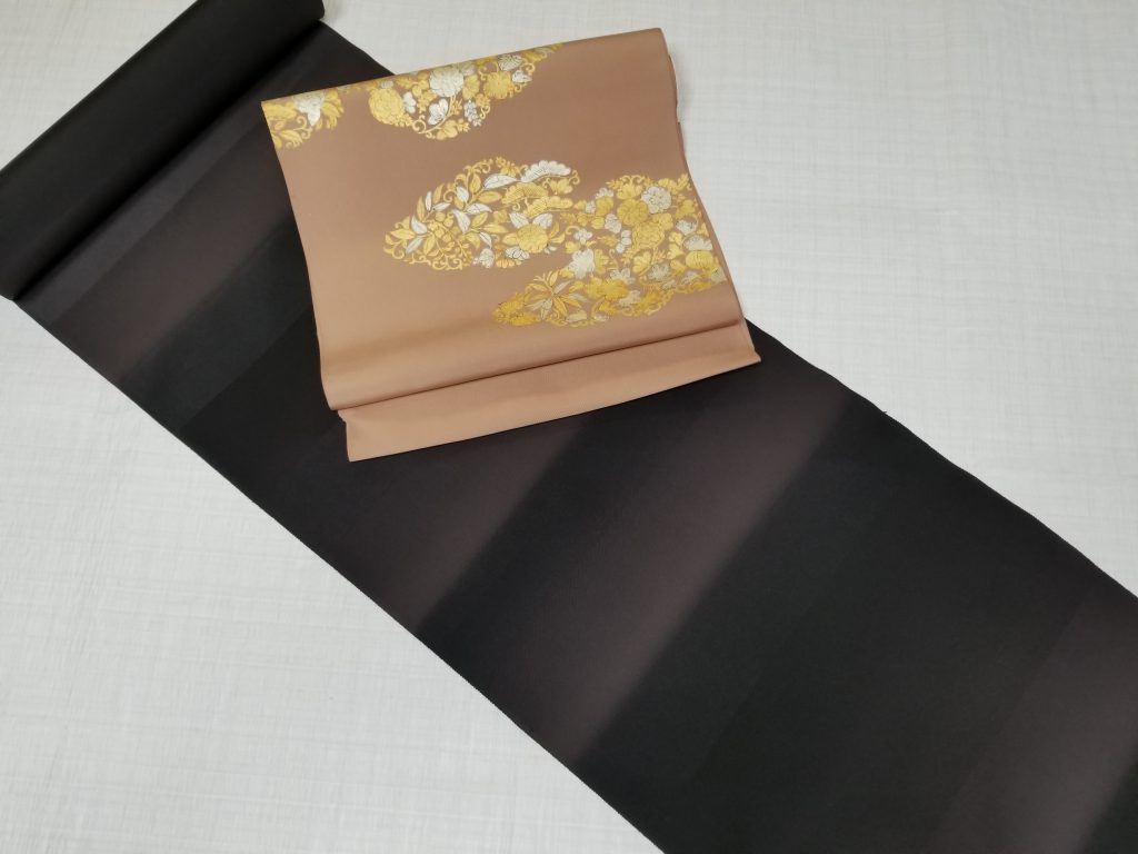 さて、本日のコーデは、摺箔シリーズの塩瀬 染帯の一本を小紋に合わせてみましたのでご覧下さい。