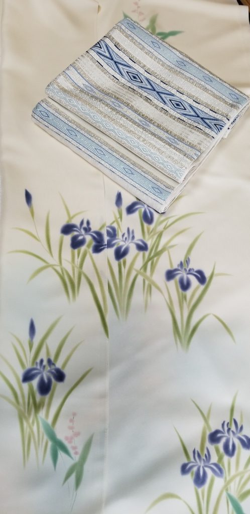 また、次に出した摺箔染帯と小紋のコーディネートも摺箔染帯をお納めさせていただきましたお客さまより「ふむふむ!参考になりました!」とご連絡をいただきました。