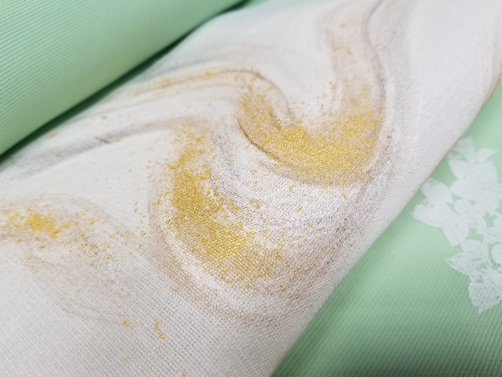 と、お休みの事はこの辺で、金彩銀彩の加工でもアレンジを加えると良い雰囲気になりますよ~という着物と帯をご覧下さい。