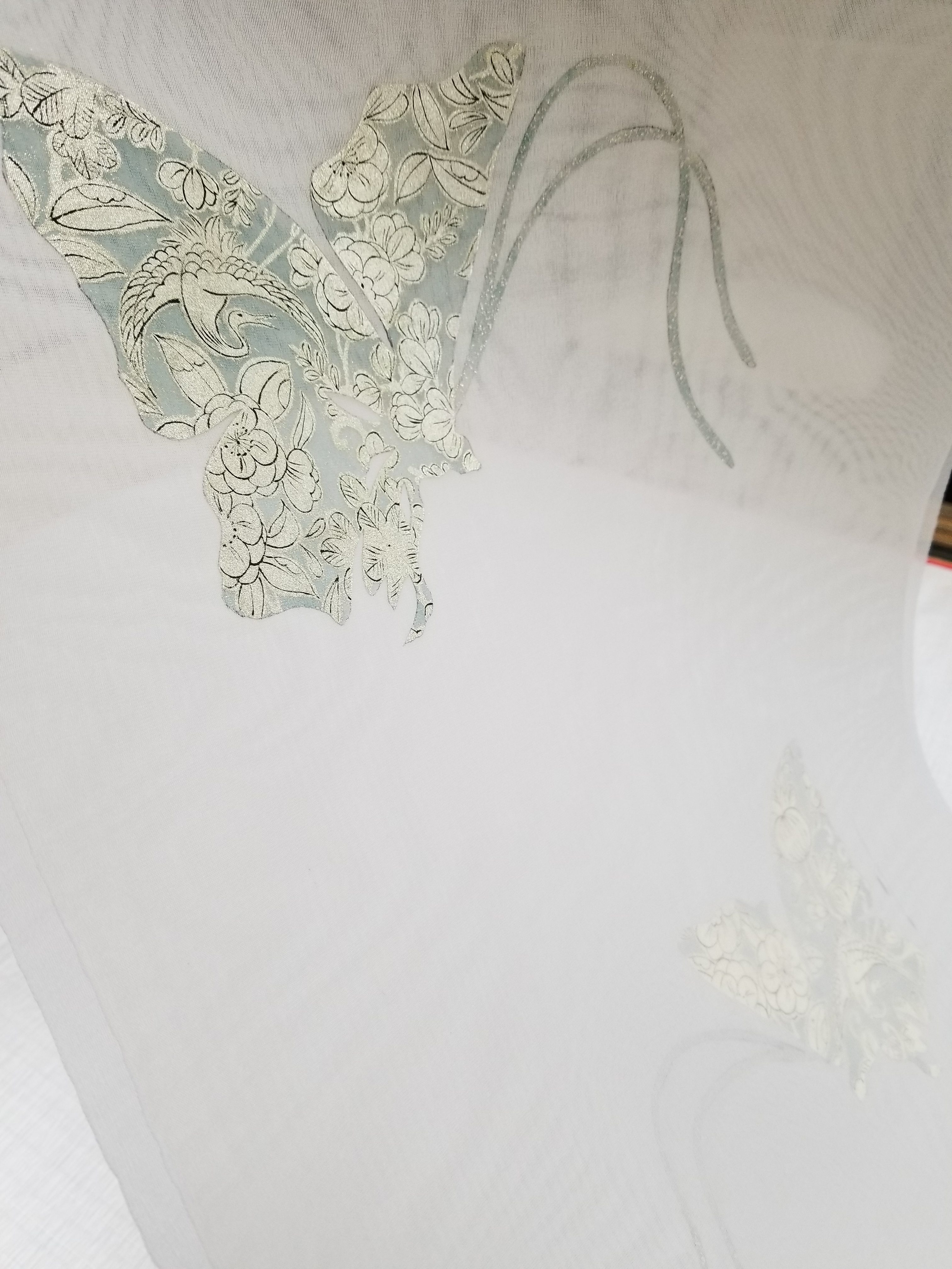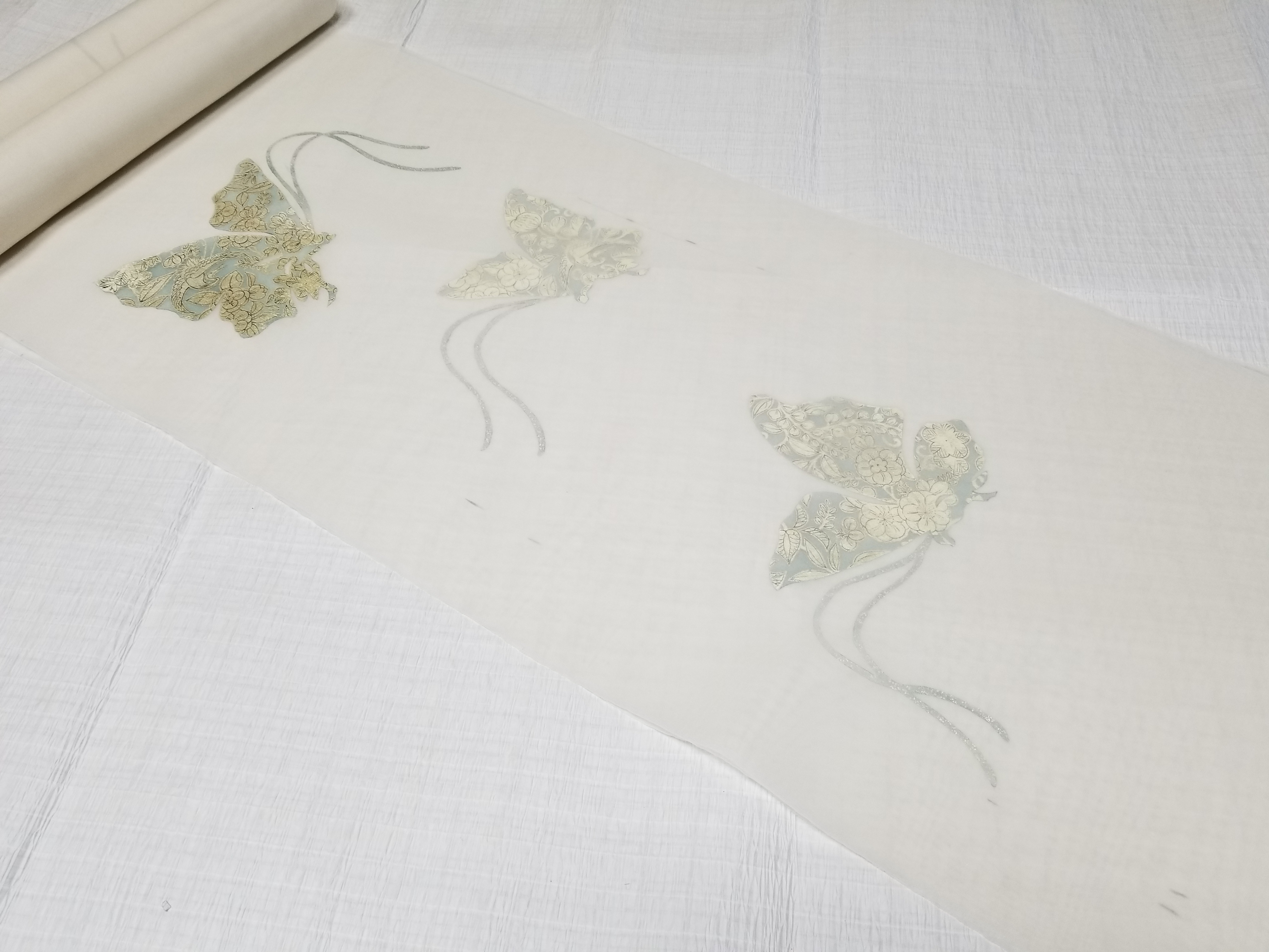 一見すると蝶の下色を濃淡にして中に摺箔を入れたようにおもわれるかも