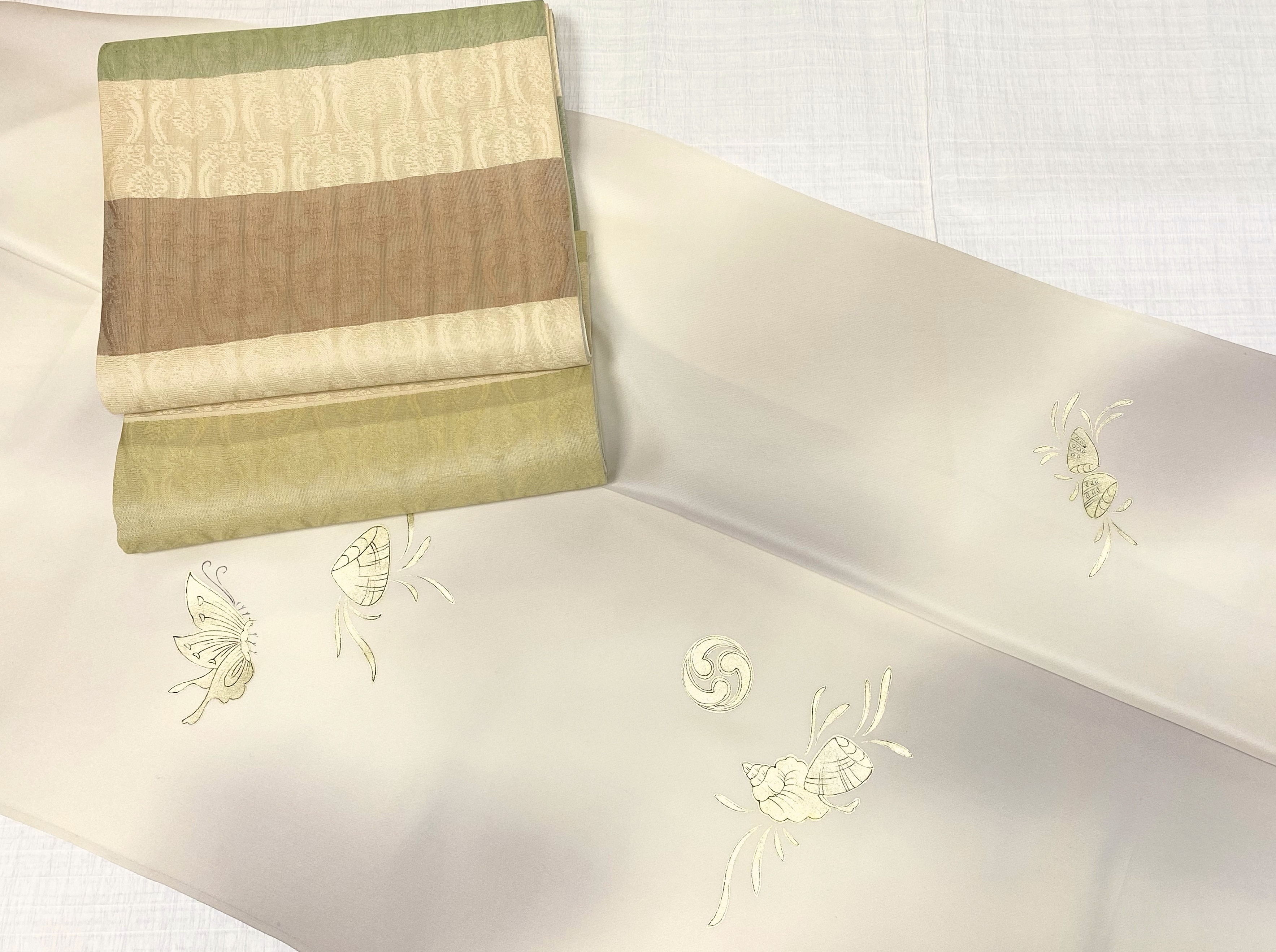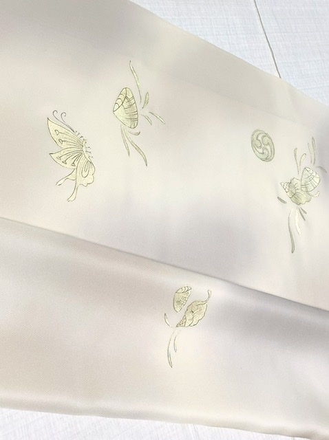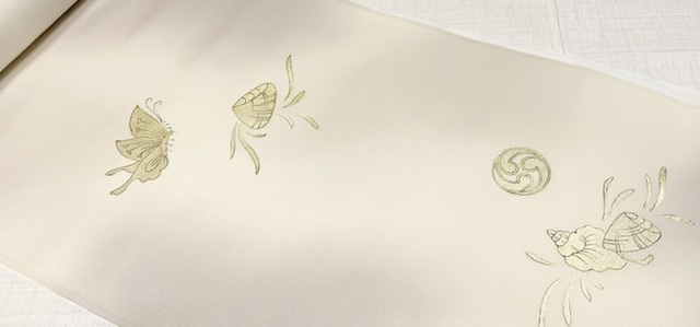 揚羽蝶、海松貝、巴紋を摺箔で仕上げました。