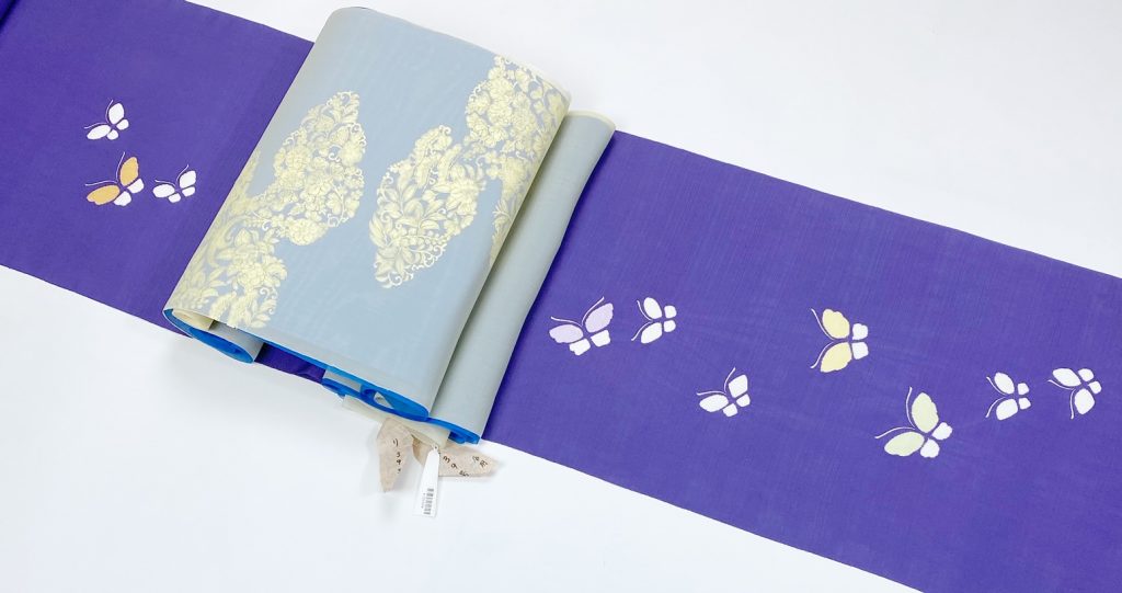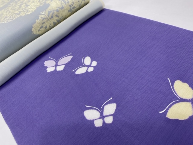 この蝶絞りの素材も特殊で「変わり壁糸 乱れ段」と呼んでる撚糸を使用した生地です。