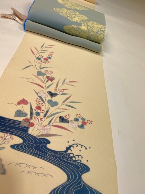このキモノも絵羽を合わすと流水の流れや友禅の調子と逸品でございます♪