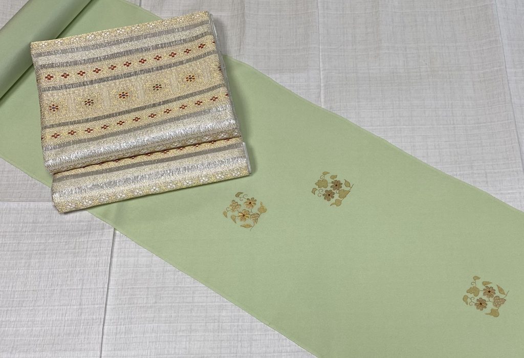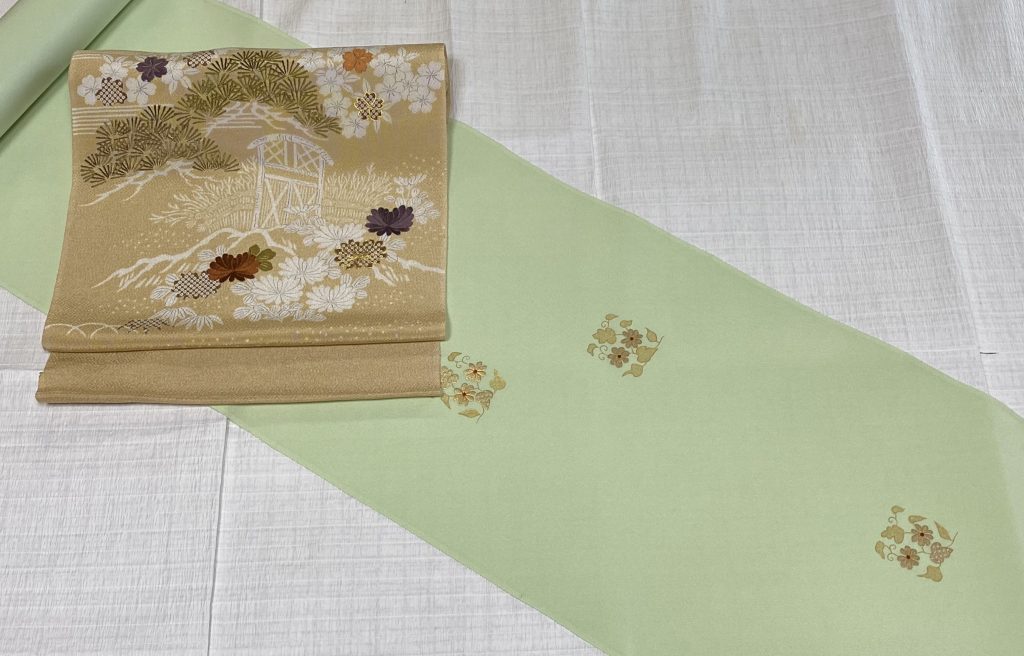 御所解染帯を選ぶ時、迷いました。。赤系もピッタリだったし、水色系でも単衣前後に合うと思い。。